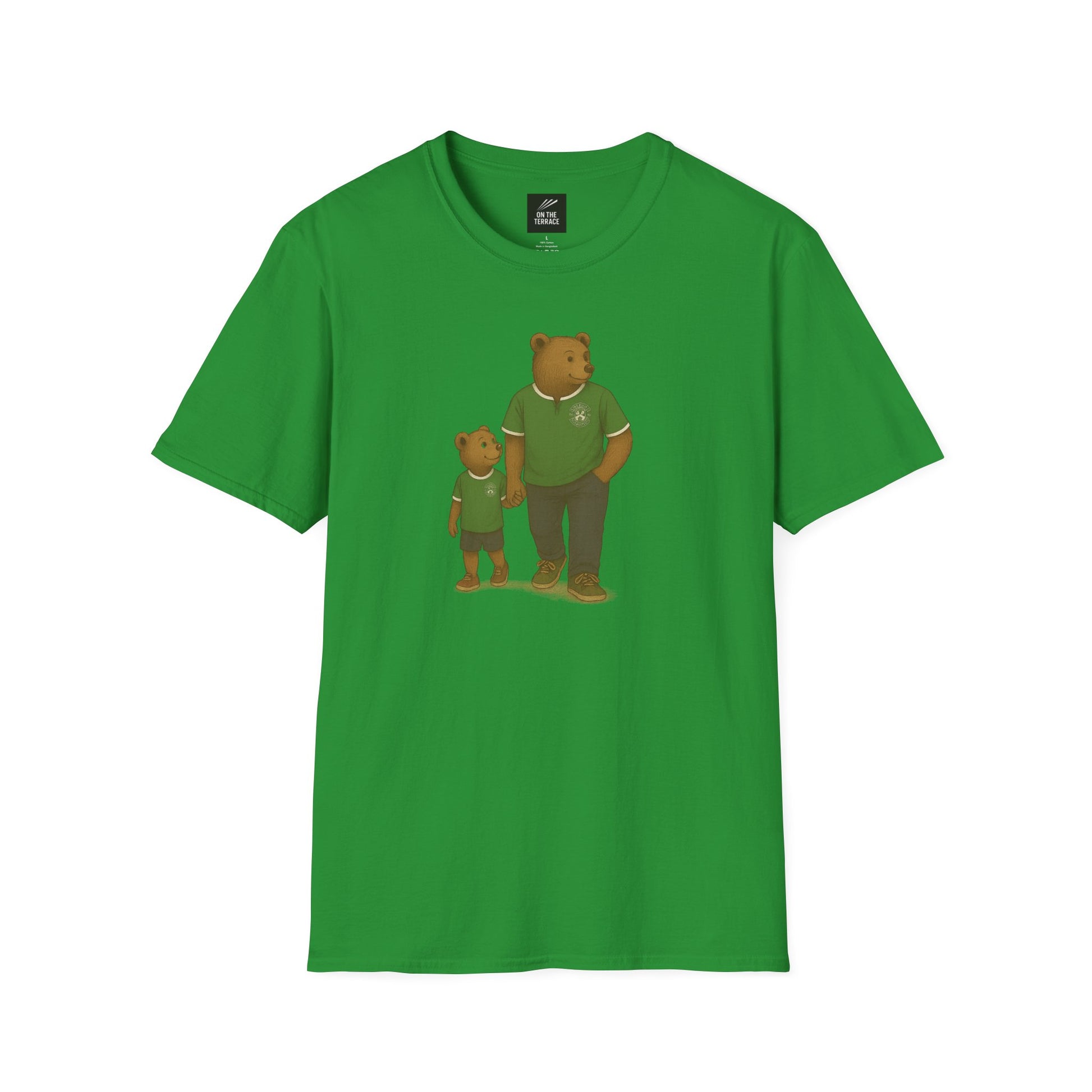 Fly the green with pride in this classic Hibs t-shirt featuring an illustrated father-and-son bear duo, both rocking the famous green shirts with the iconic harp crest, strolling hand-in-hand towards Easter Road. Designed by On The Terrace, this premium emerald tee is printed using advanced DTG (Direct-to-Garment) technology for a super-soft, ultra-detailed graphic that stays vibrant and completely crack-free wash after wash. Perfect for the Famous Five Stand, Leith nights out, or passing the Hibee love down to the next generation—timeless style, unbeatable comfort, and pure Hibs passion. Mon the Cabbage!